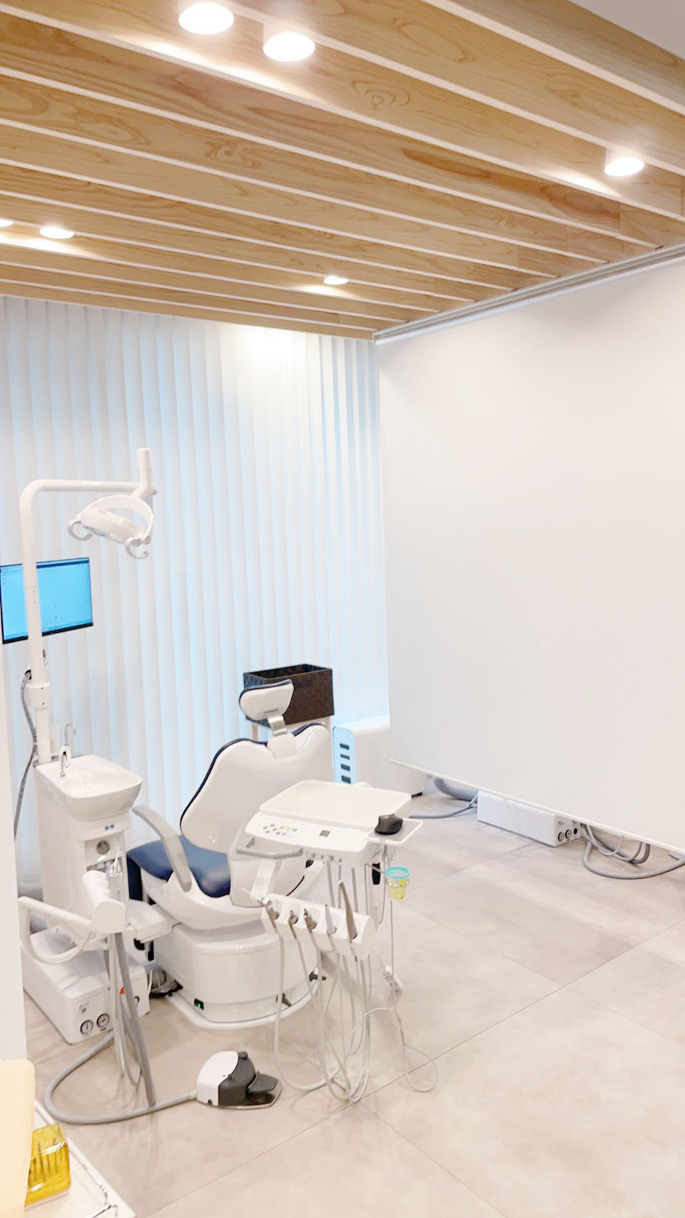 診療台は、ロールカーテンを下ろすことで半個室にすることができます。
